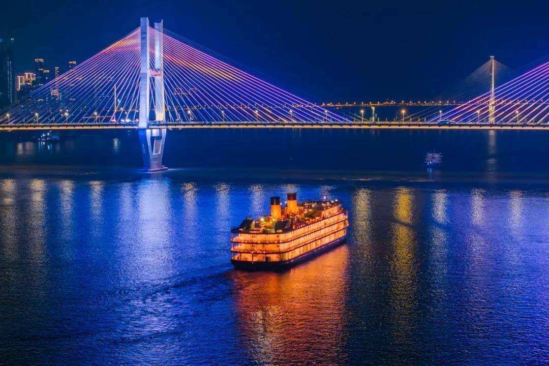 作为长江首席观景平台,“知音号”专航将提供5000㎡露天甲板的360°无遮挡视野,游客可尽享长江落日、星河璀璨与烟花交织的梦幻场景。船行途中,杨泗港大桥的金黄、鹦鹉洲大桥的赤红、武汉长江大桥的巍峨等世界级城市夜景将如画卷般展开,打造“长江漂移剧场”的独特体验。